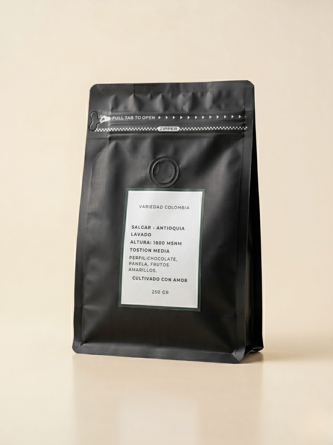 Descubre nuestra bolsa de café edición especial: 250 gramos de puro deleite. Este café variedad Colombia ha sido cuidadosamente cultivado a 1800 metros sobre el nivel del mar, asegurando una calidad excepcional en cada grano. Las notas a chocolate y frutos amarillos lo convierten en una experiencia sensorial única que alegrará tus mañanas o cualquier instante especial.